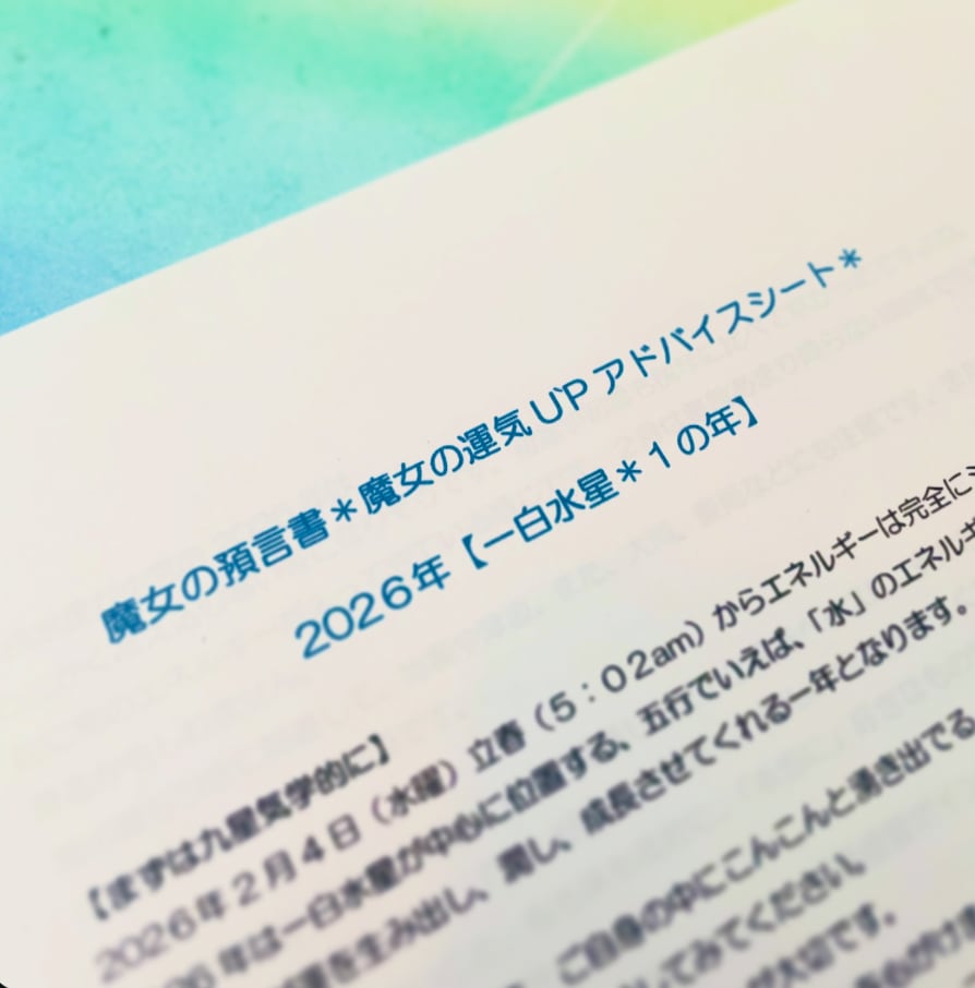 2025年に引き続き、本当に大激動の一年。2026年の一白水星のエネルギー、ポイント、キーワード、魔女が受け取っているメッセージや世の中の流れ、開運行動を事前に知って心がけることで、大荒れの2026年を乗り切っていきましょう。(全9ページ)